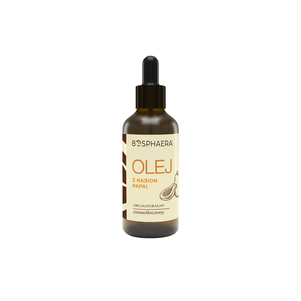 Olej z nasion papai bogaty jest w składniki odżywcze, kwasy tłuszczowe i antyoksydanty, które nawilżają, odżywiają i regenerują skórę. Zawiera również enzym o nazwie papaina, który rozpuszcza i usuwa martwe komórki naskórka, oczyszczając skórę. Olej doskonale nadaje się do naturalnej pielęgnacji włosów, ponieważ wspomaga naprawę rozdwojonych końcówek. Polecany do pielęgnacji wszystkich rodzajów skóry, a zwłaszcza cery problematycznej, wrażliwej i objętej AZS lub łuszczycą.
