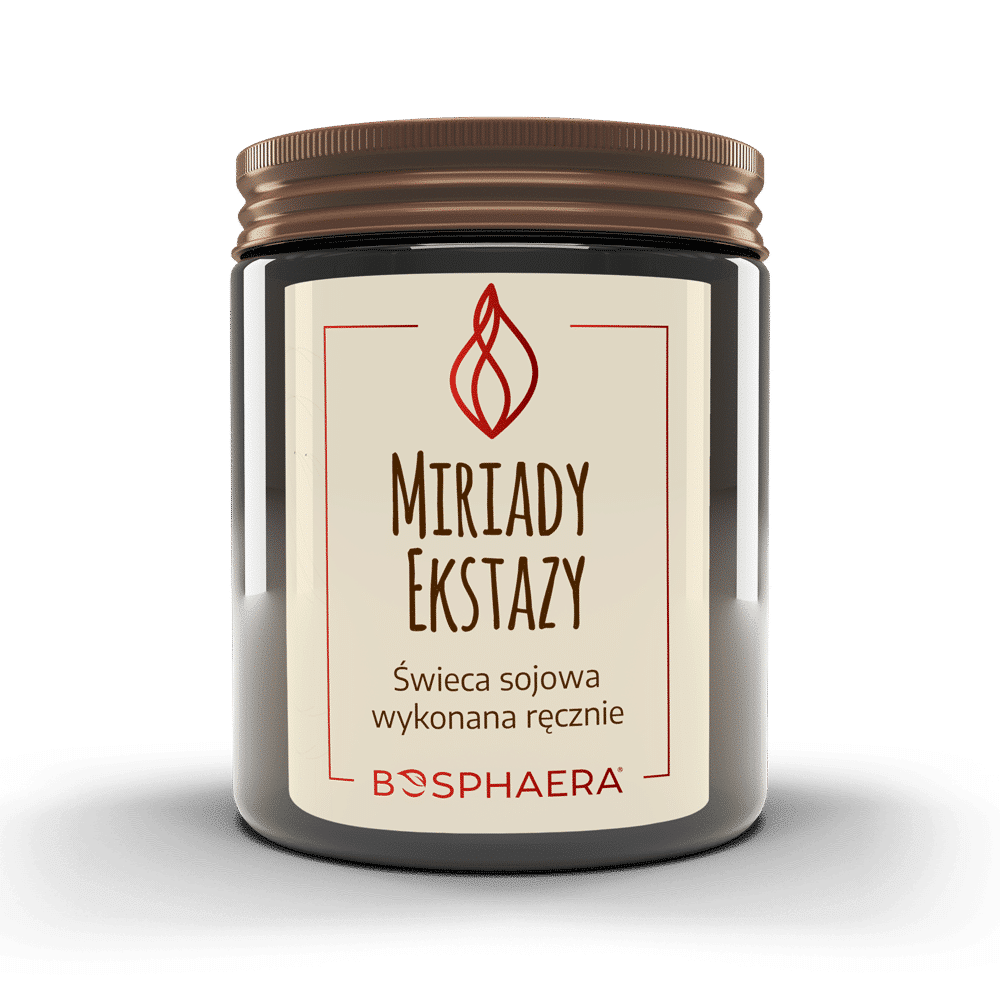 Miriady ekstazy to połączenie korzennego aromatu goździków i cynamonu, z orzeźwiającą pomarańczą oraz słodką wanilią. Idealna naturalna świeca dla osób, które cenią sobie tego typu niebanalne połączenia zapachowe. Doskonała do przytulnego salonu, zacisznej sypialni lub biura. Zapach pomarańczy działa pobudzająco na umysł. Z kolei słodycz wanilii dodaje świecy odrobiny przytulnego ciepła, tak potrzebnego podczas jesiennych oraz zimowych dni.